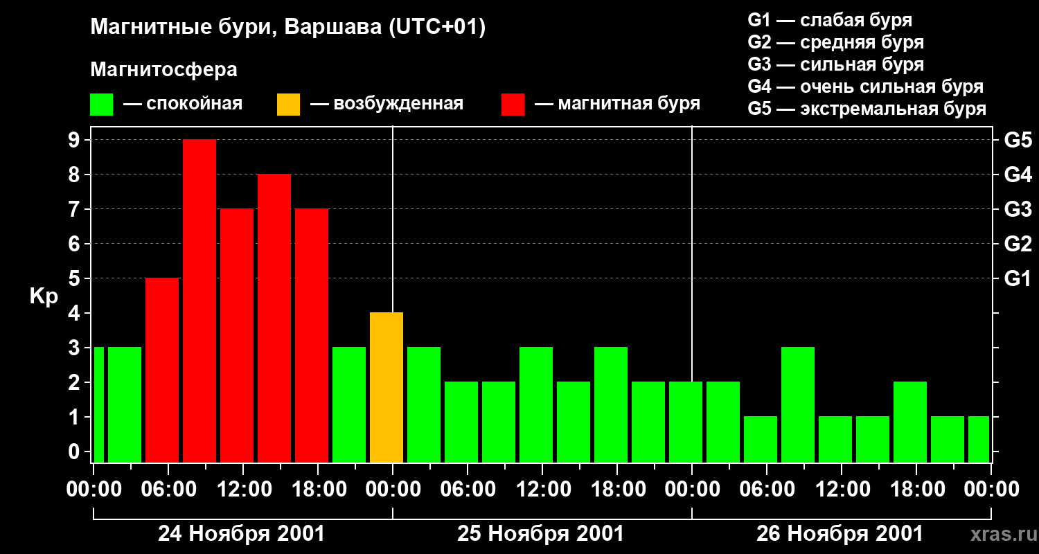 Магнитные бури в Варшаве — 26 ноября 2001 года