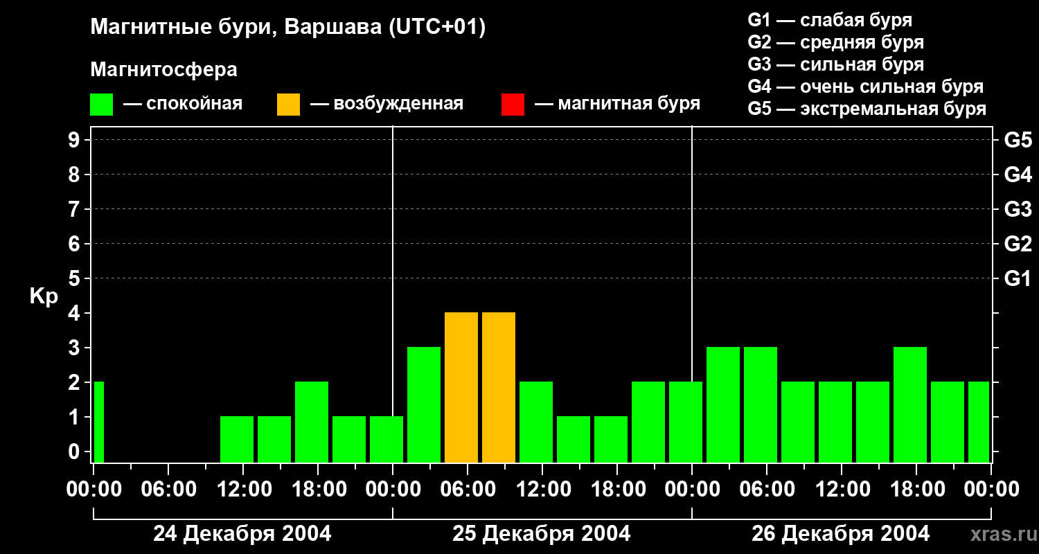 Магнитные бури в Варшаве — 26 декабря 2004 года