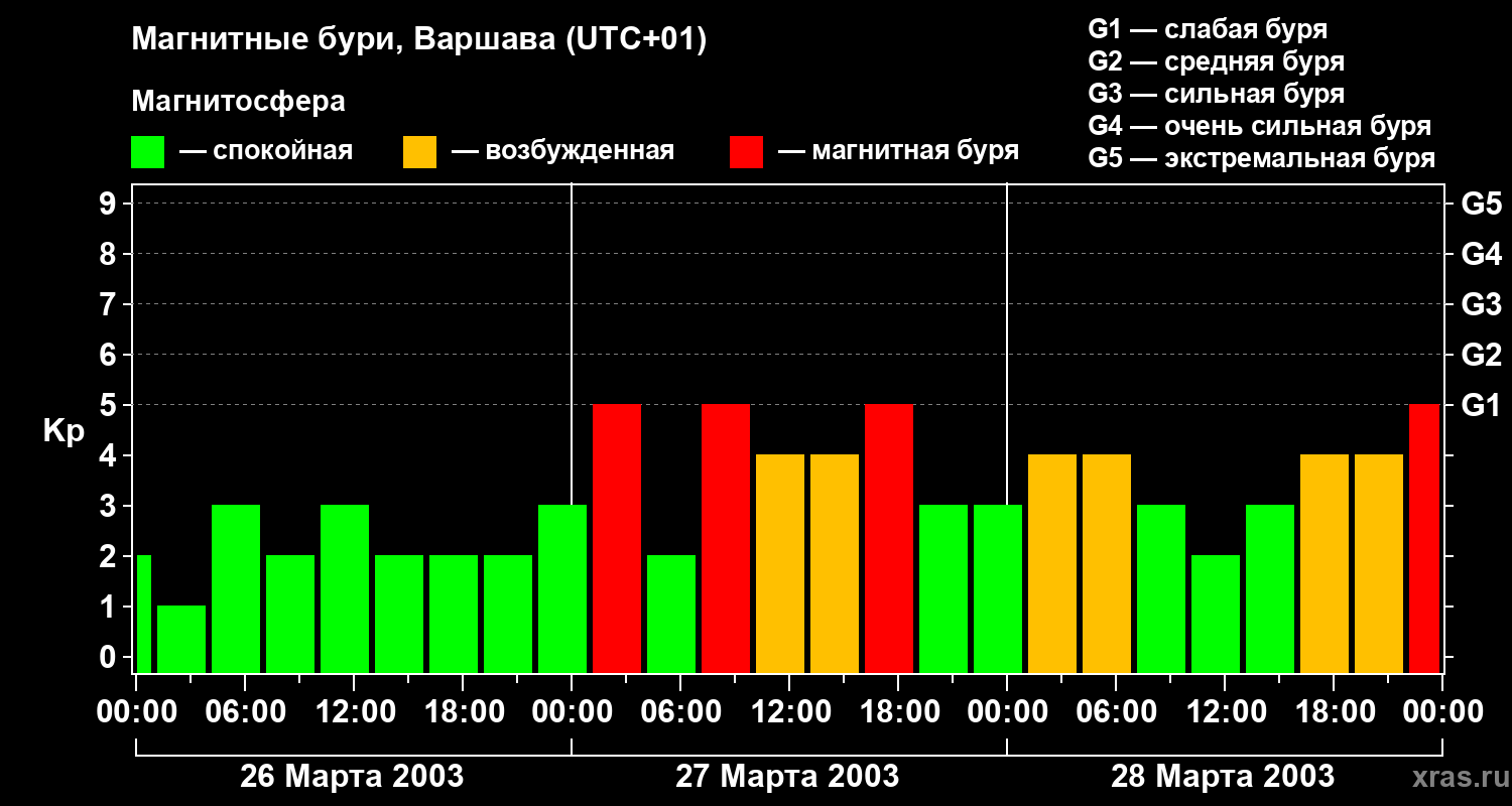Магнитные бури в Варшаве — 28 марта 2003 года