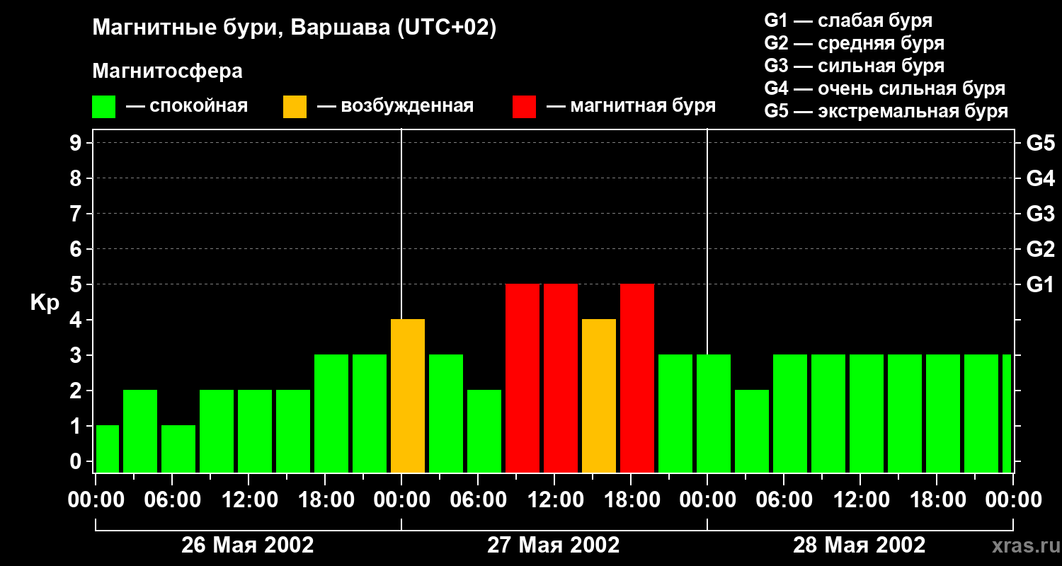 Магнитные бури в Варшаве — 28 мая 2002 года