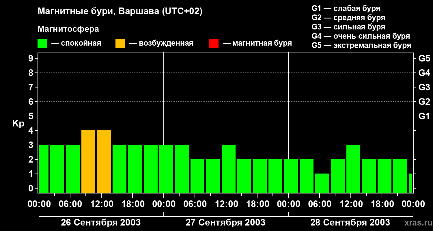 Магнитные бури в Варшаве — 28 сентября 2003 года