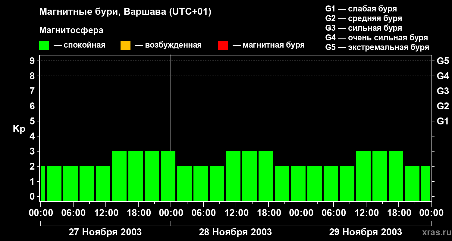 Магнитные бури в Варшаве — 29 ноября 2003 года