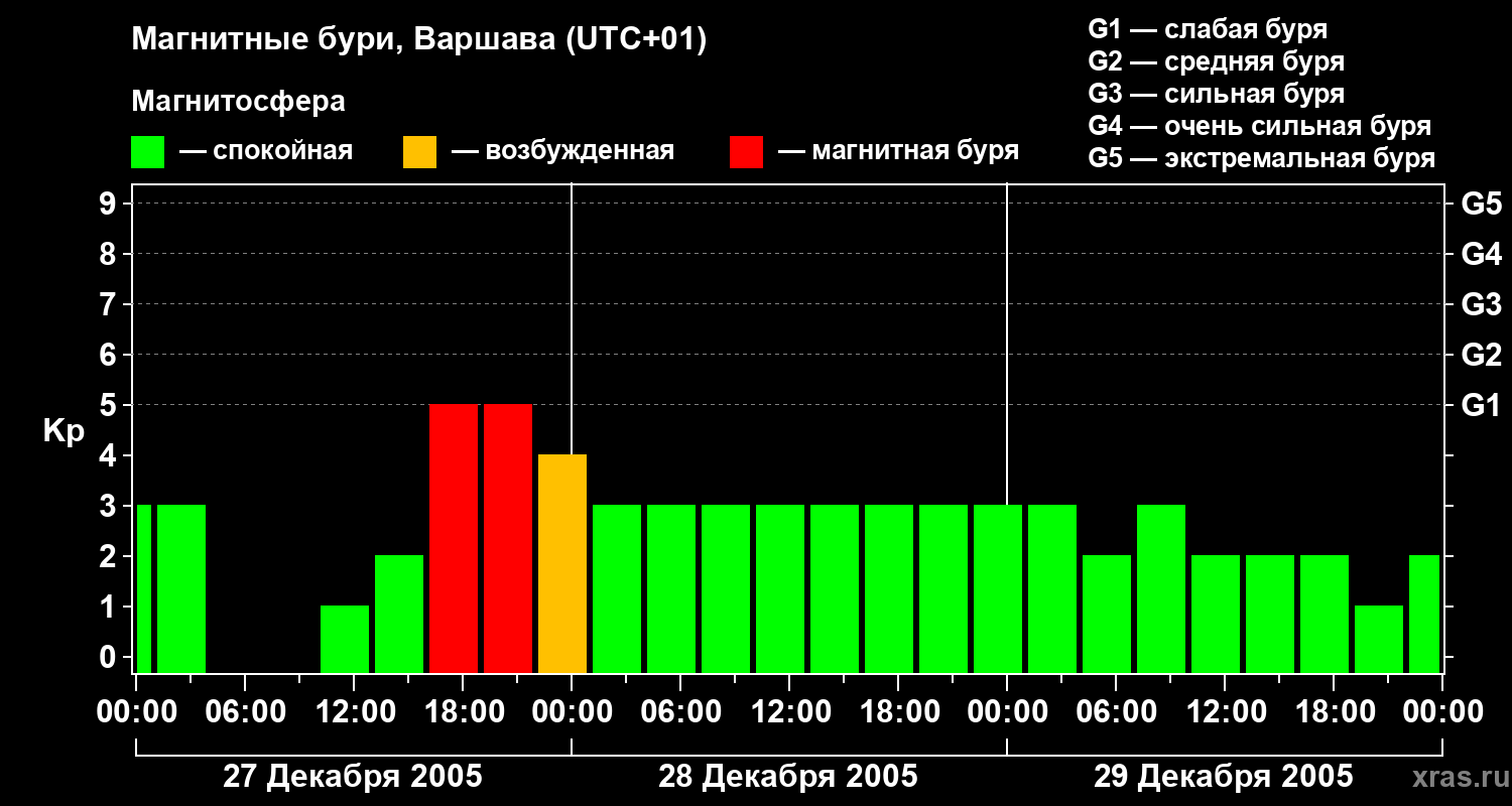 Магнитные бури в Варшаве — 29 декабря 2005 года