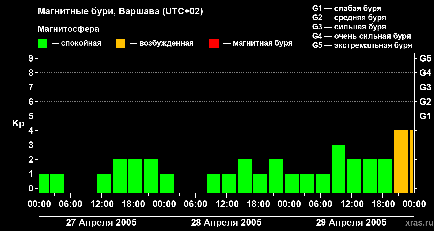 Магнитные бури в Варшаве — 29 апреля 2005 года