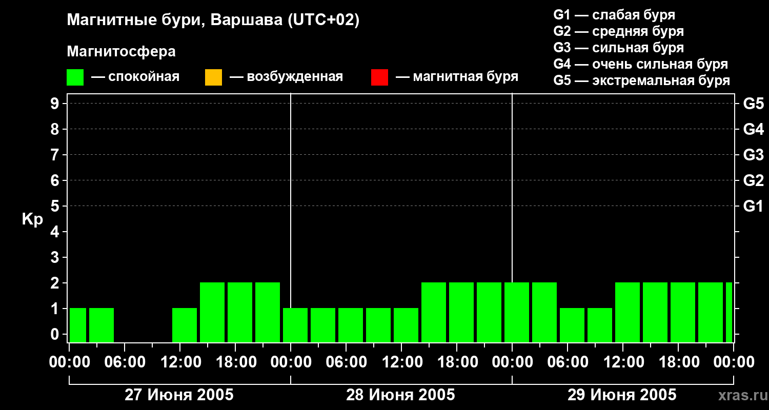 Магнитные бури в Варшаве — 29 июня 2005 года