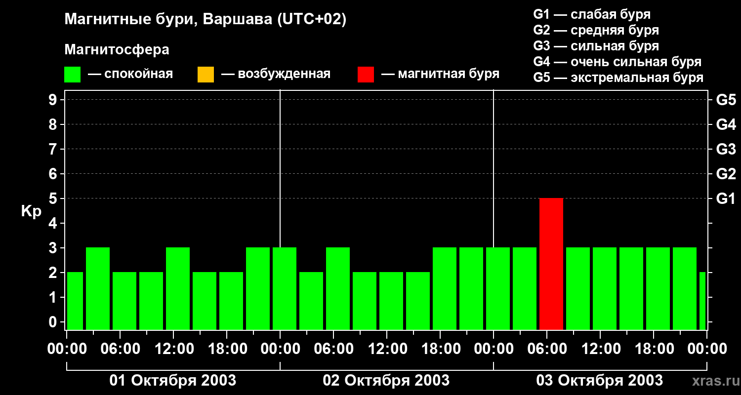 Магнитные бури в Варшаве — 3 октября 2003 года