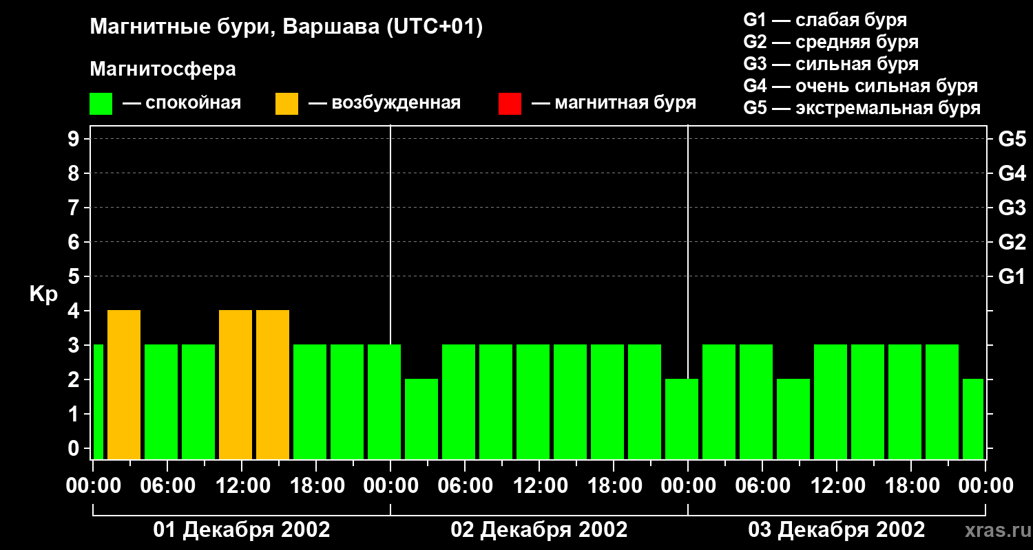 Магнитные бури в Варшаве — 3 декабря 2002 года