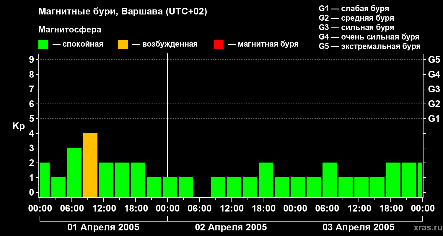 Магнитные бури в Варшаве — 3 апреля 2005 года