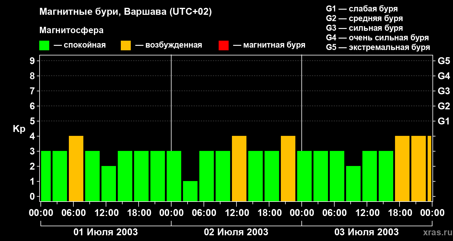 Магнитные бури в Варшаве — 3 июля 2003 года