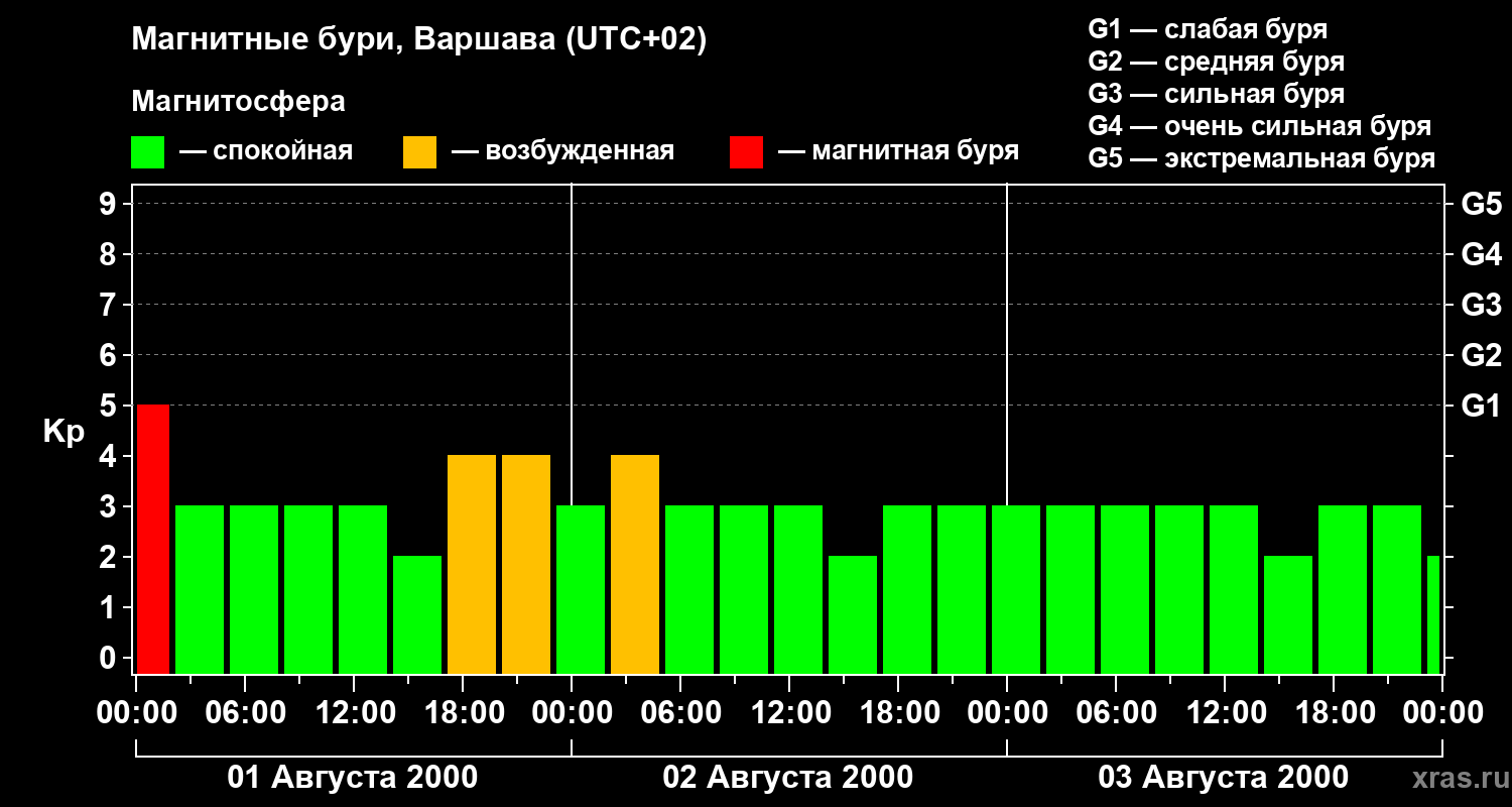 Магнитные бури в Варшаве — 3 августа 2000 года