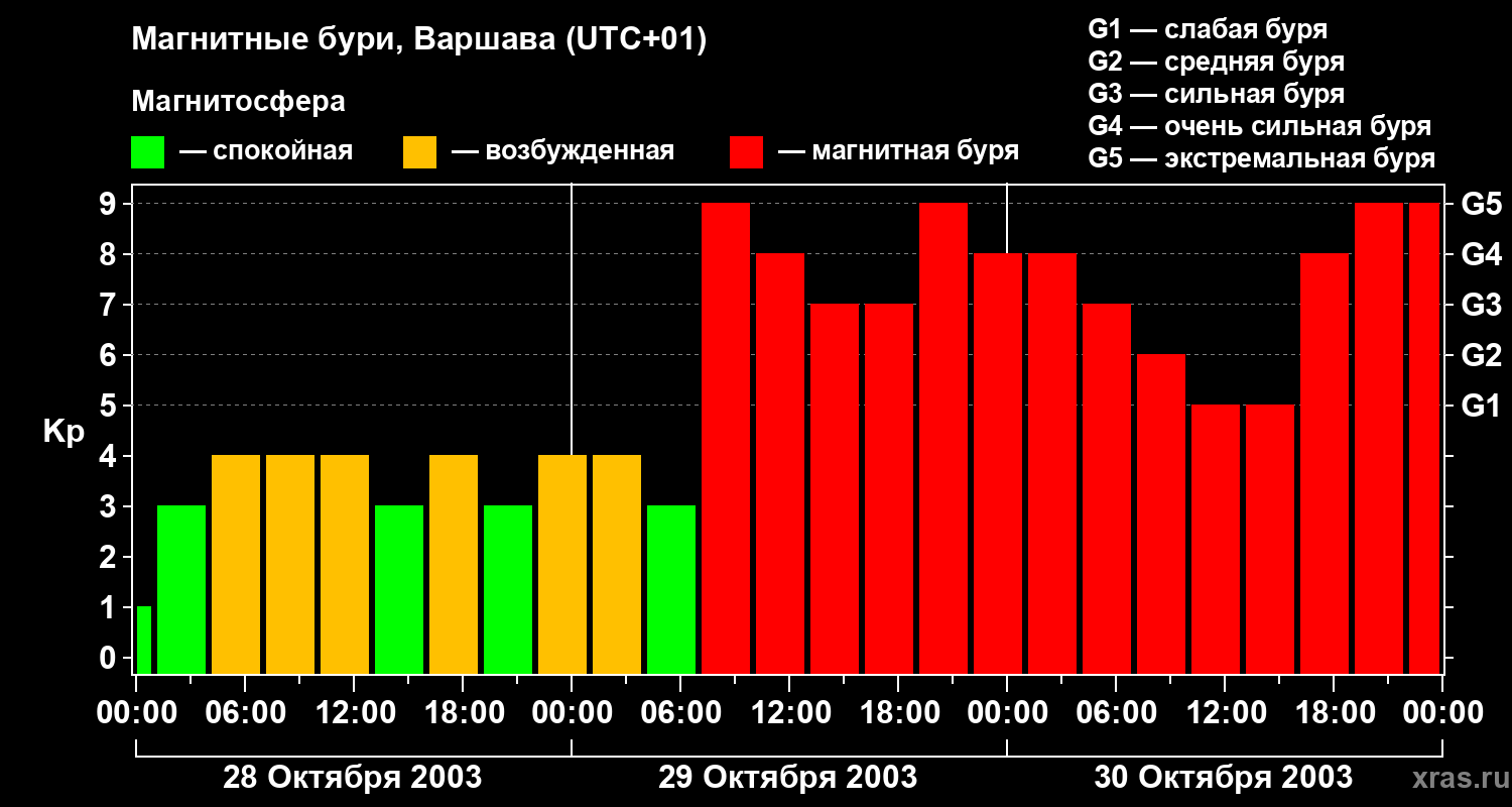 Магнитные бури в Варшаве — 30 октября 2003 года