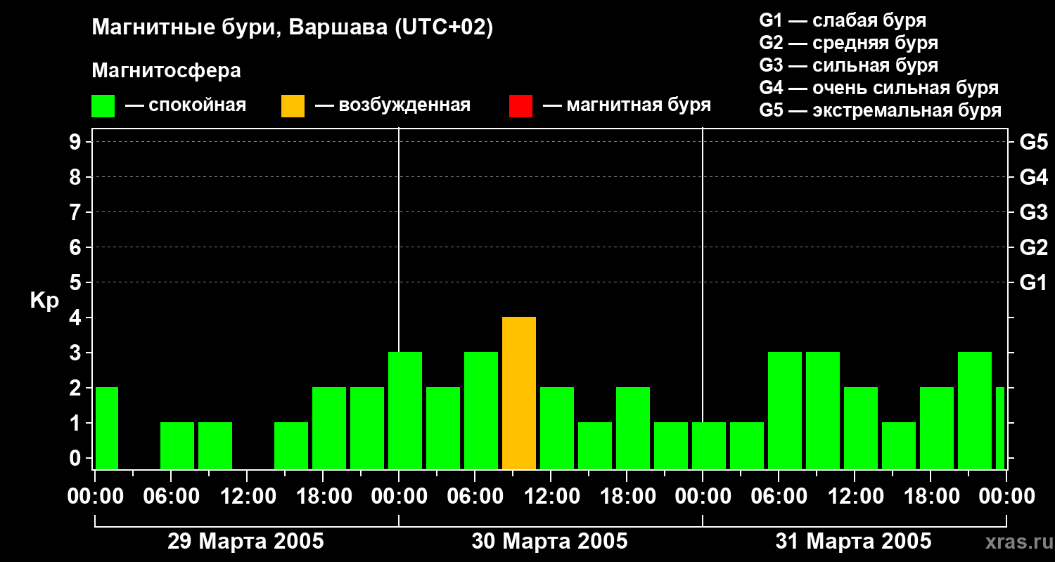 Магнитные бури в Варшаве — 31 марта 2005 года