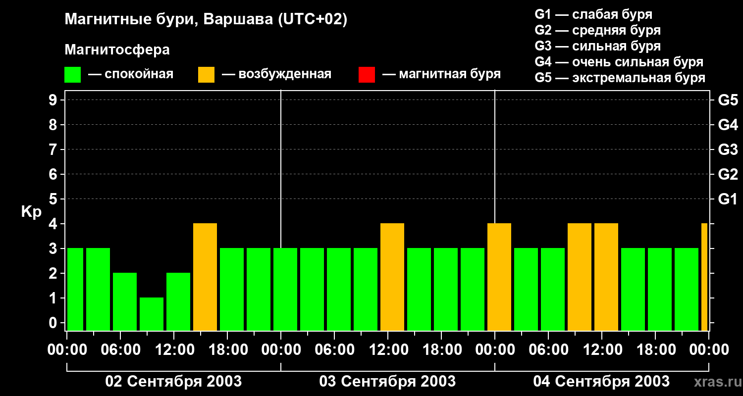 Магнитные бури в Варшаве — 4 сентября 2003 года
