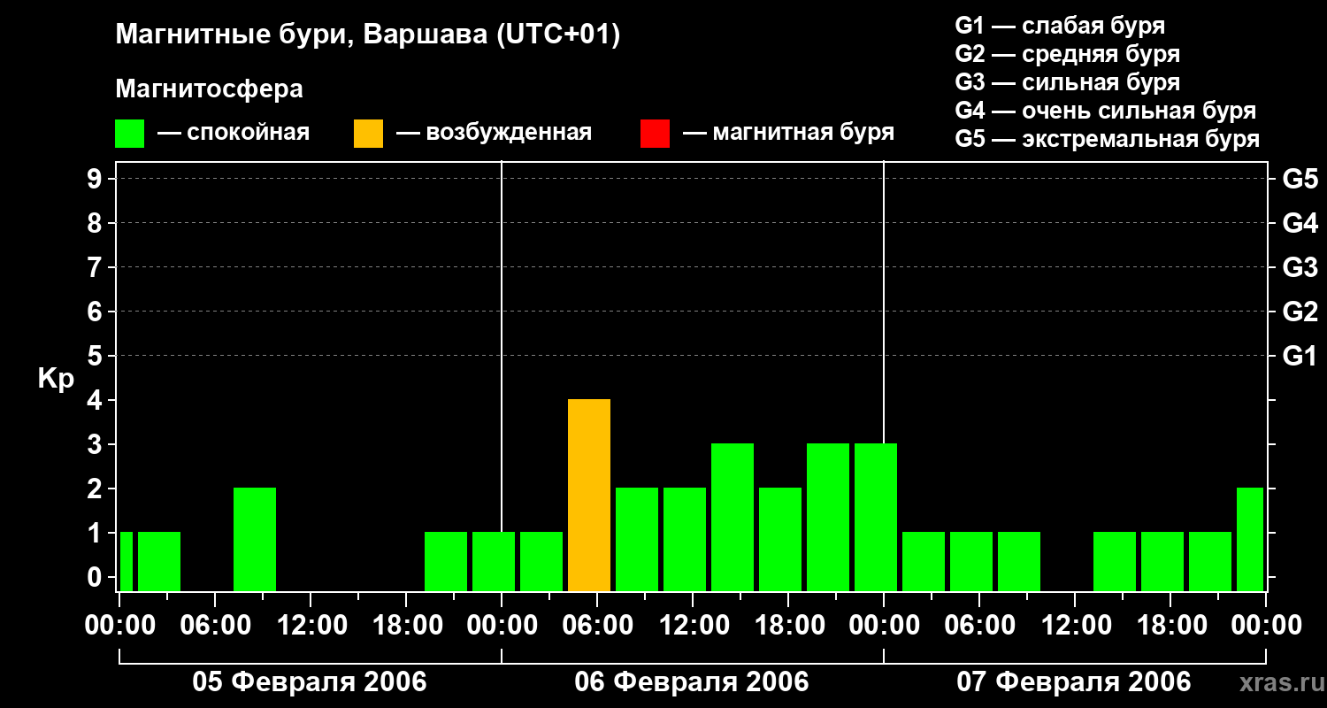 Магнитные бури в Варшаве — 7 февраля 2006 года