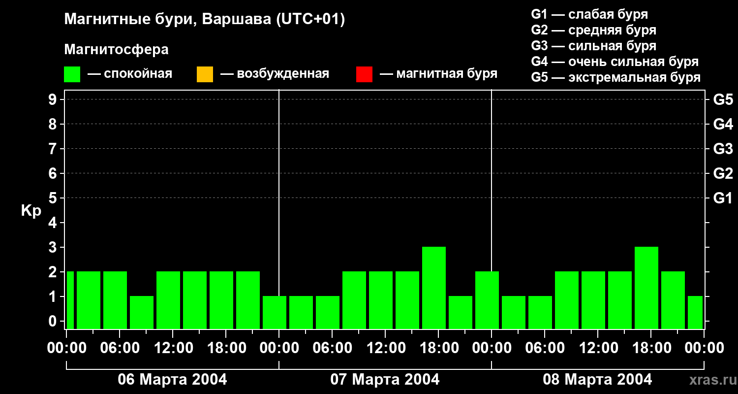 Магнитные бури в Варшаве — 8 марта 2004 года