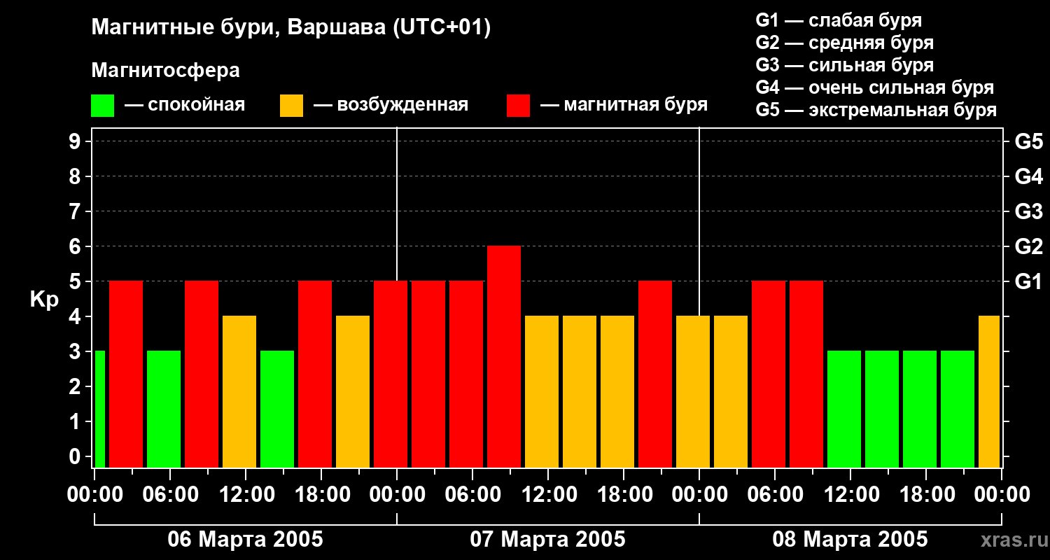 Магнитные бури в Варшаве — 8 марта 2005 года