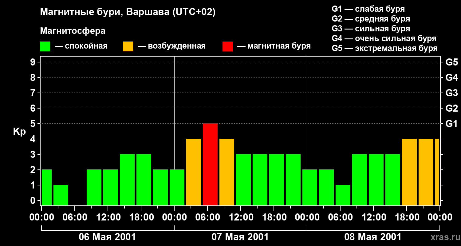 Магнитные бури в Варшаве — 8 мая 2001 года