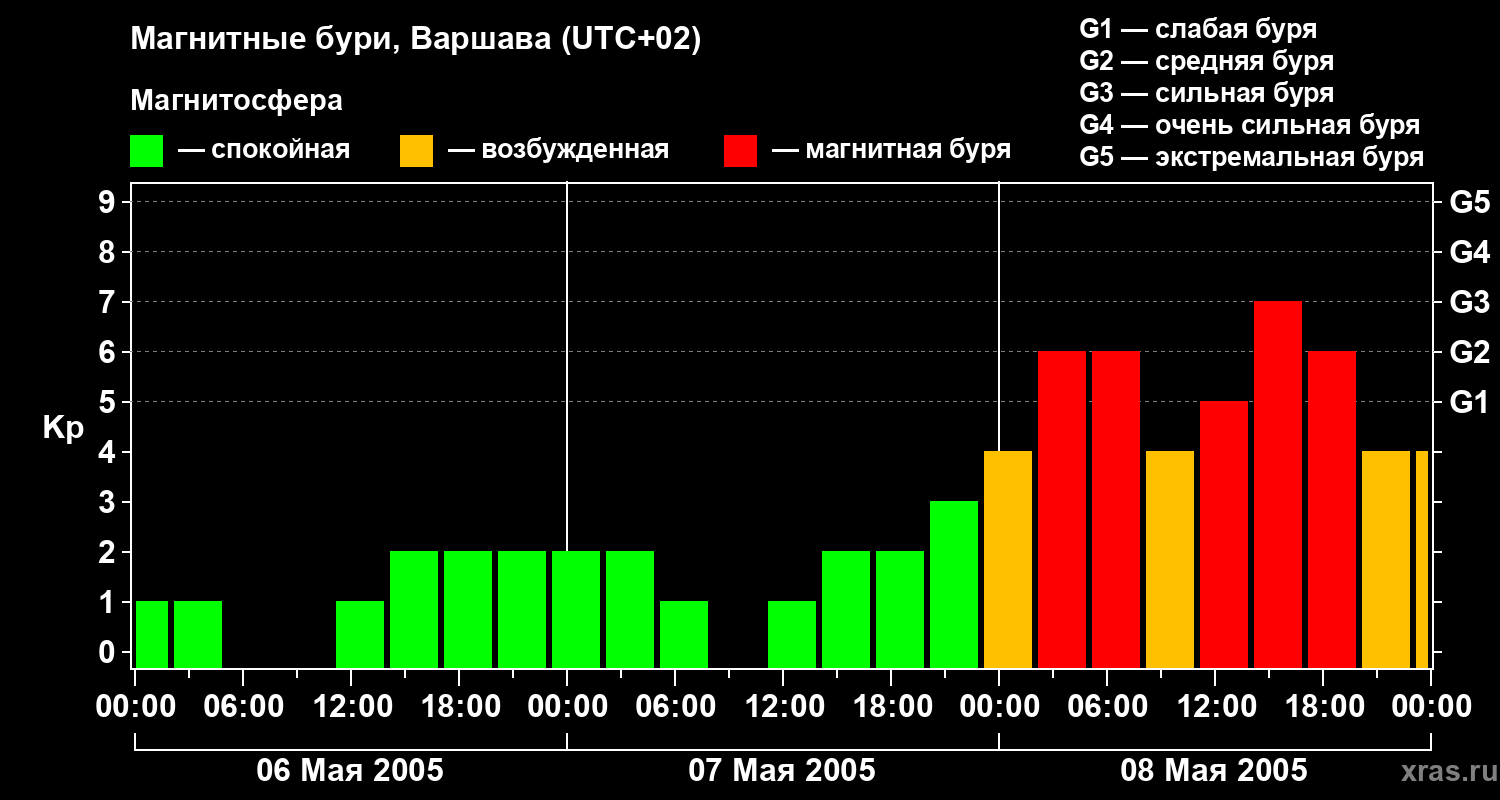Магнитные бури в Варшаве — 8 мая 2005 года