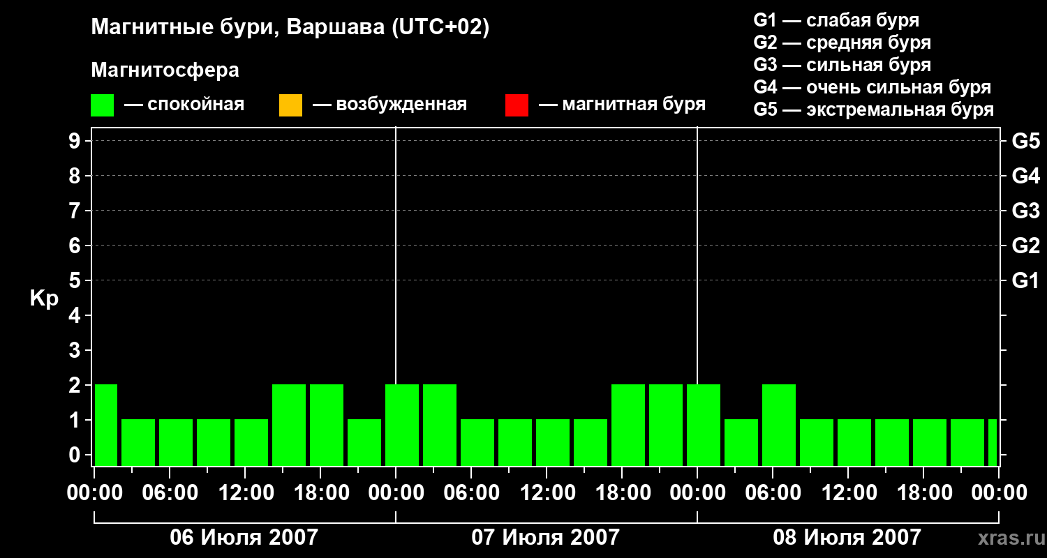 Магнитные бури в Варшаве — 8 июля 2007 года