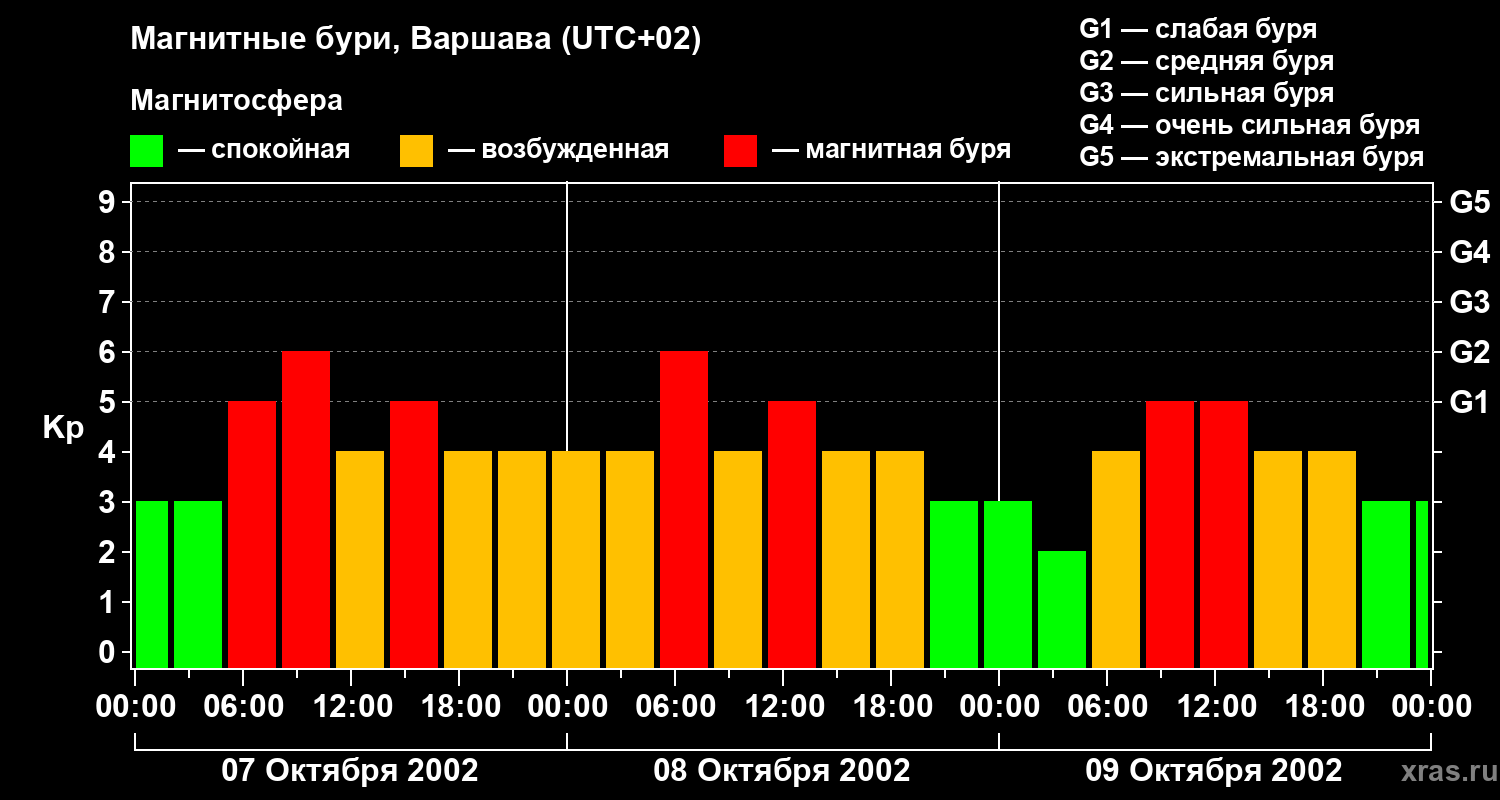 Магнитные бури в Варшаве — 9 октября 2002 года