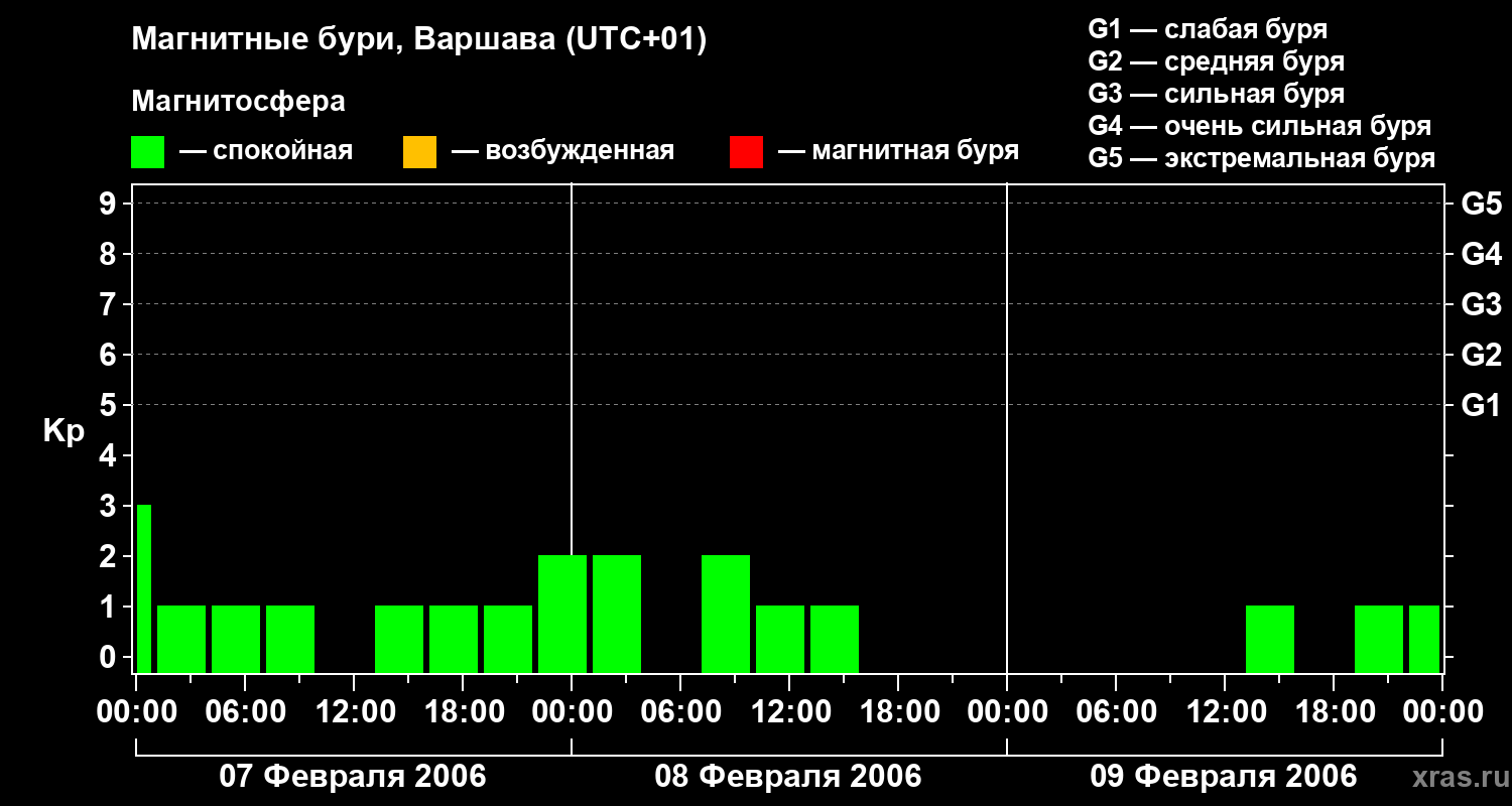Магнитные бури в Варшаве — 9 февраля 2006 года