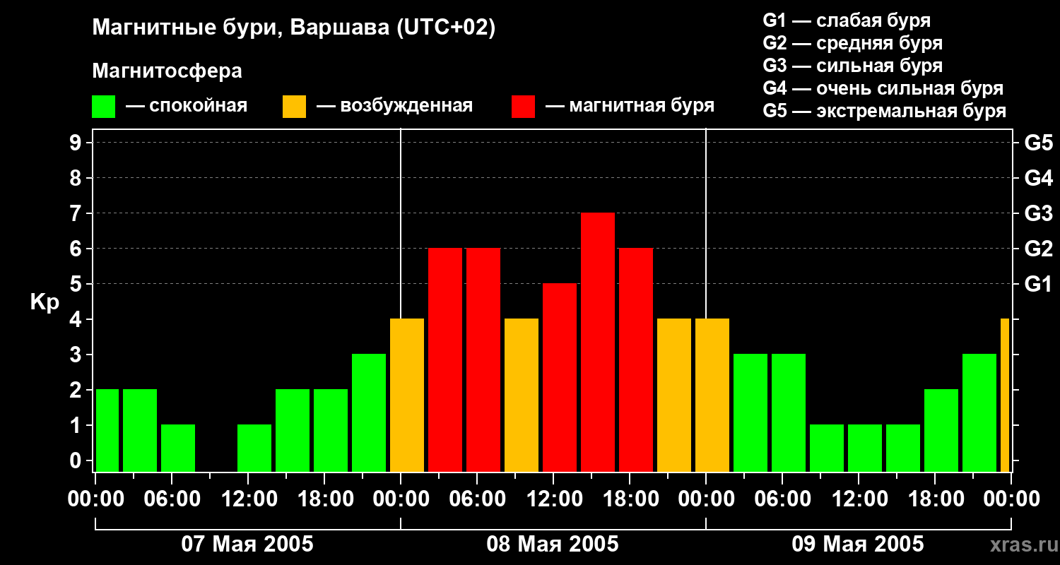 Магнитные бури в Варшаве — 9 мая 2005 года