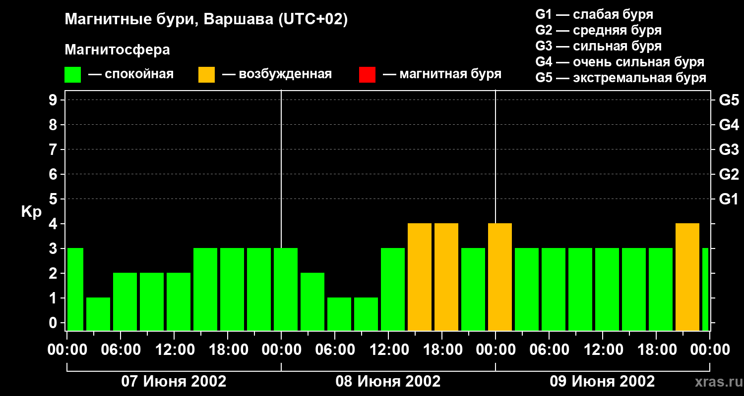 Магнитные бури в Варшаве — 9 июня 2002 года