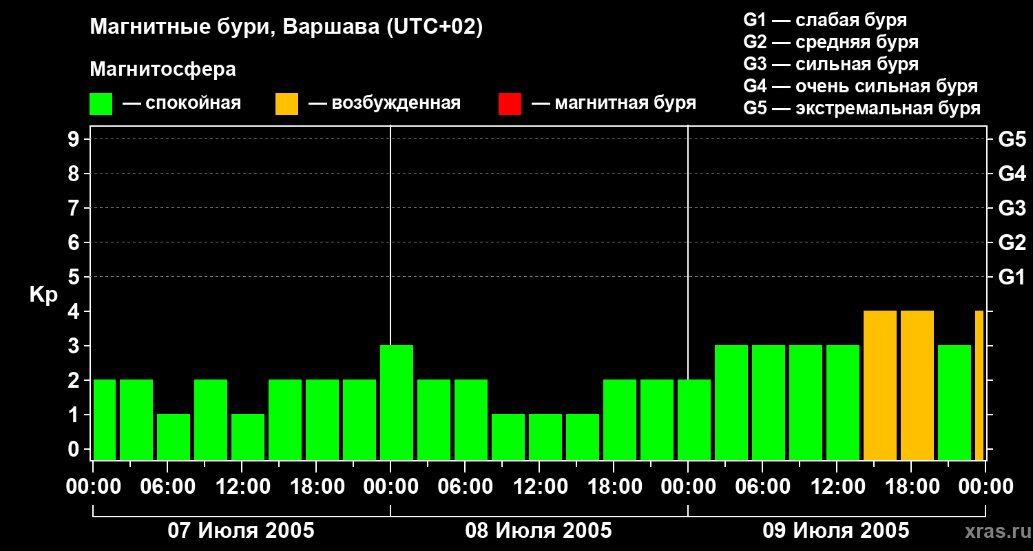 Магнитные бури в Варшаве — 9 июля 2005 года