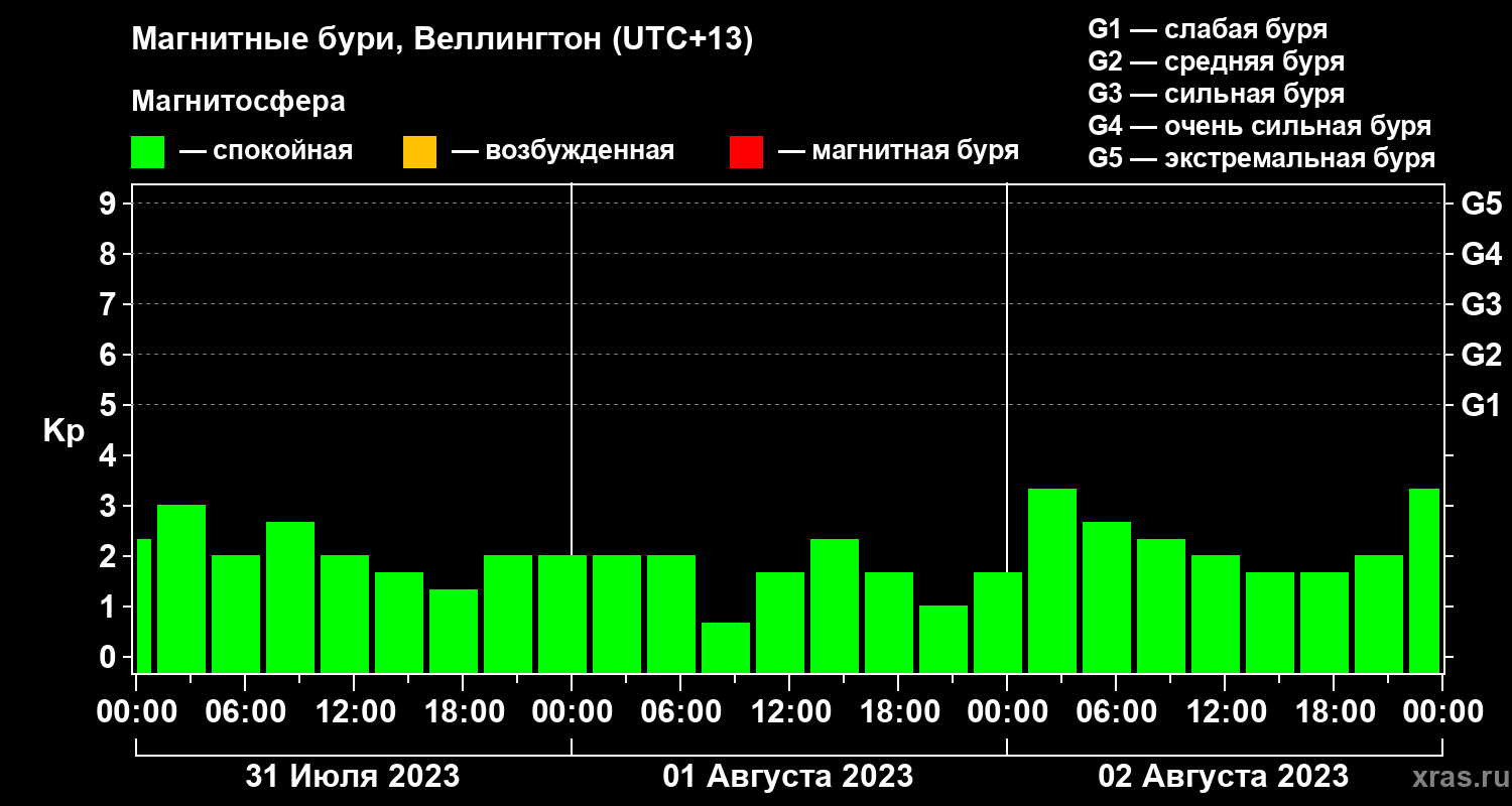 Магнитные бури в Веллингтоне 2 августа 2023 года