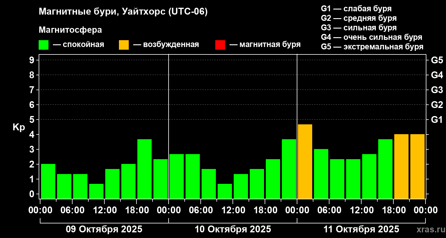 Магнитные бури в Уайтхорсе 11 октября 2025 года