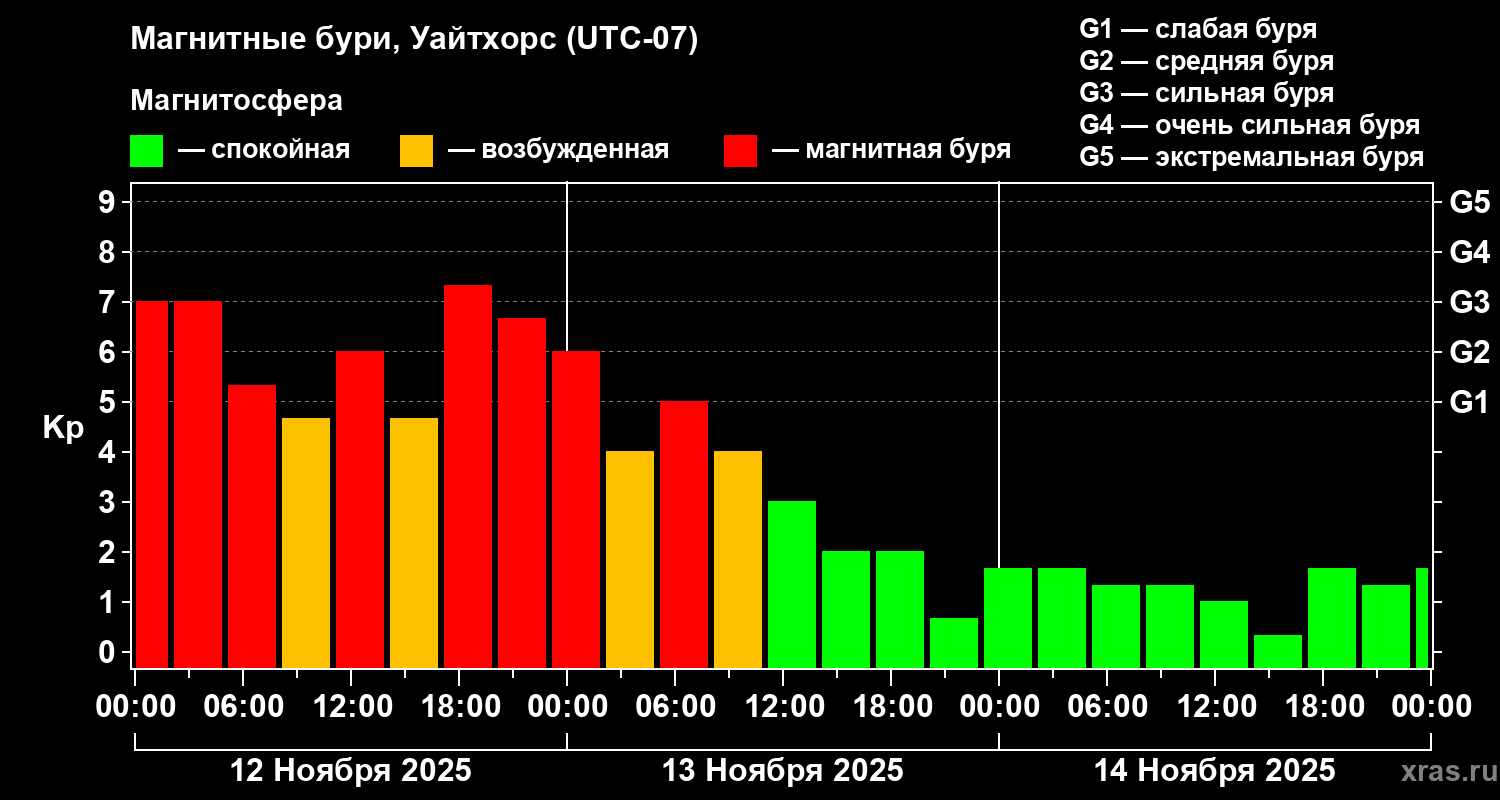 Магнитные бури в Уайтхорсе 14 ноября 2025 года