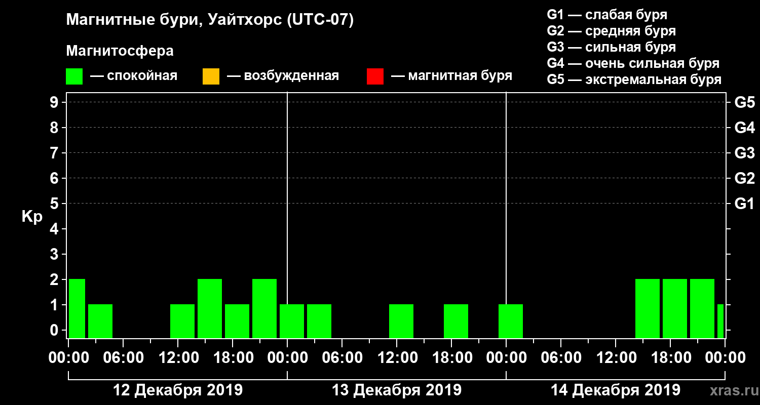 Магнитные бури в Уайтхорсе 14 декабря 2019 года