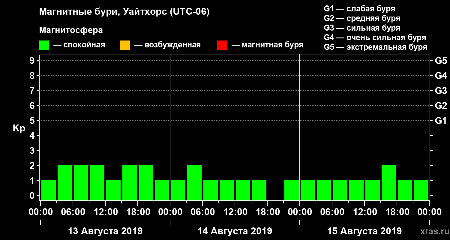 Магнитные бури в Уайтхорсе 15 августа 2019 года