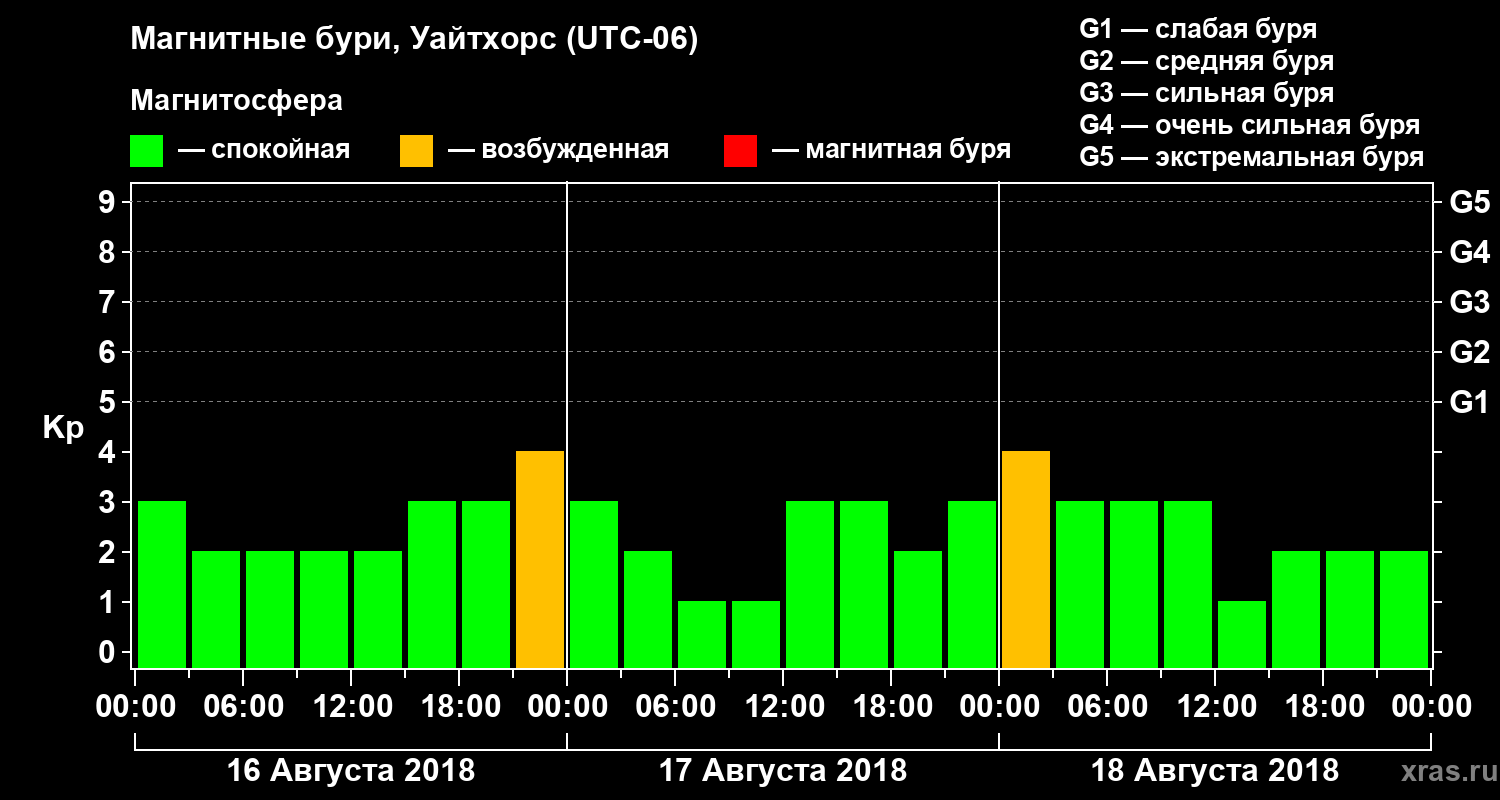 Магнитные бури в Уайтхорсе 18 августа 2018 года