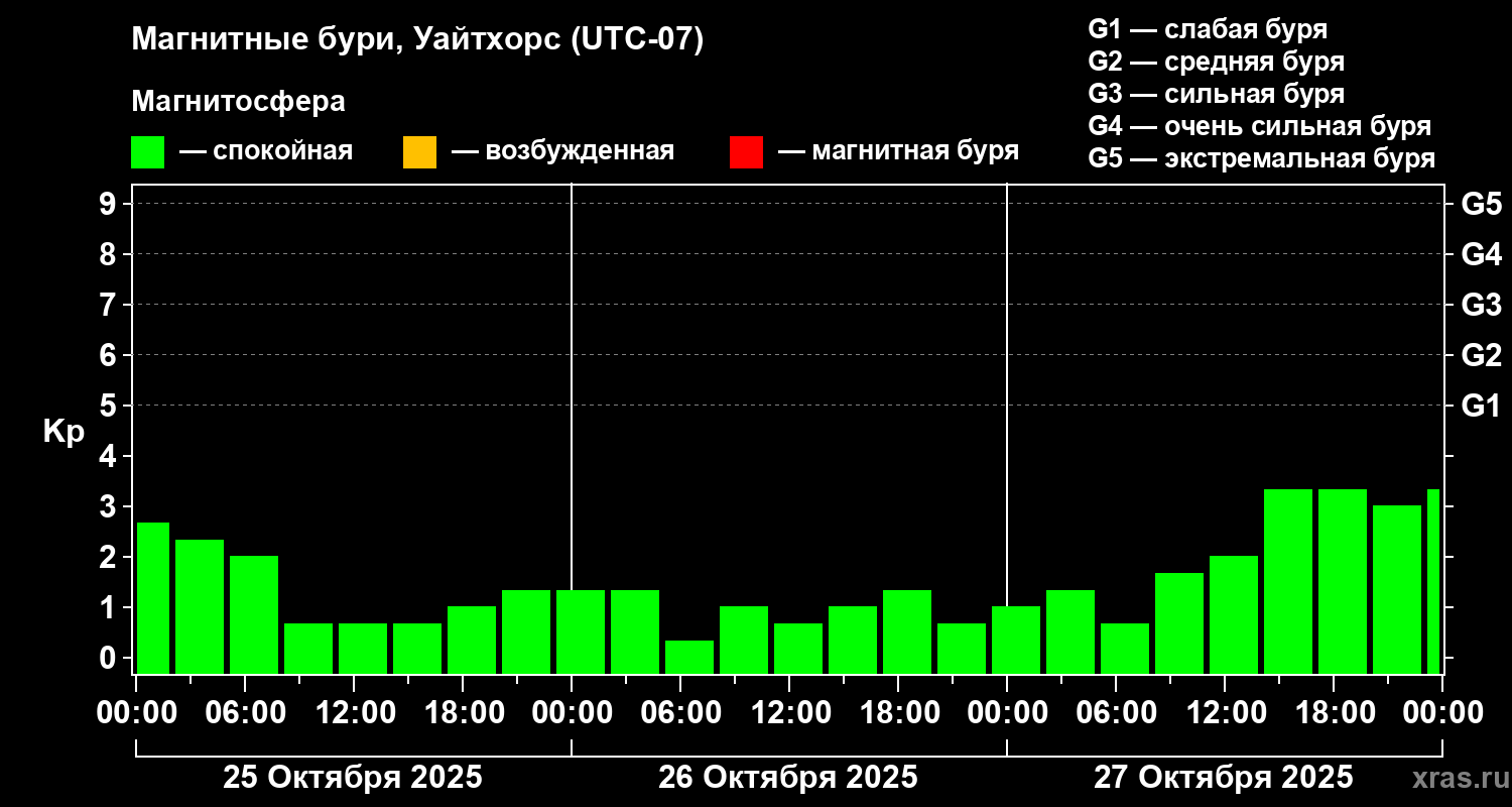 Магнитные бури в Уайтхорсе — 27 октября 2025 года
