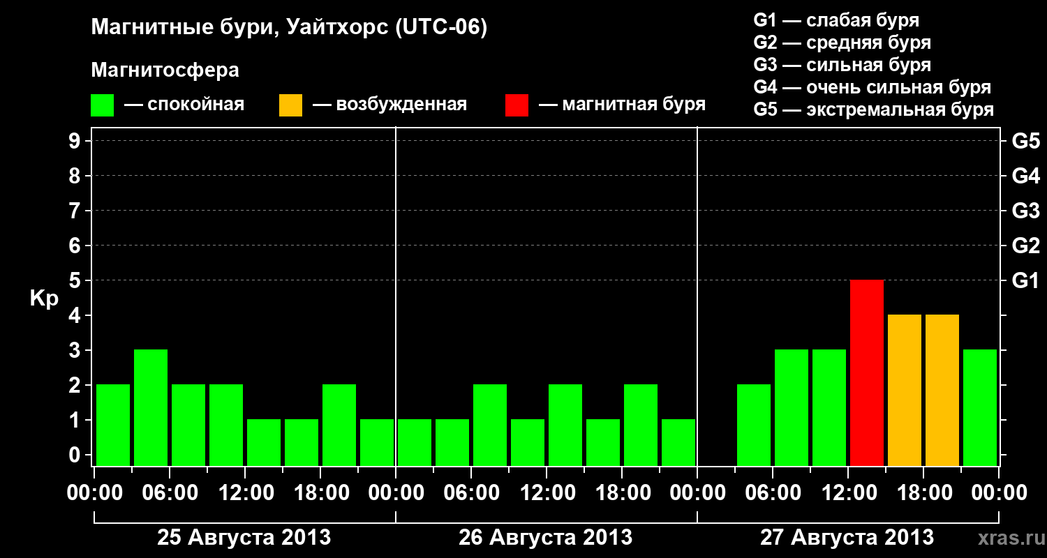 Магнитные бури в Уайтхорсе 27 августа 2013 года