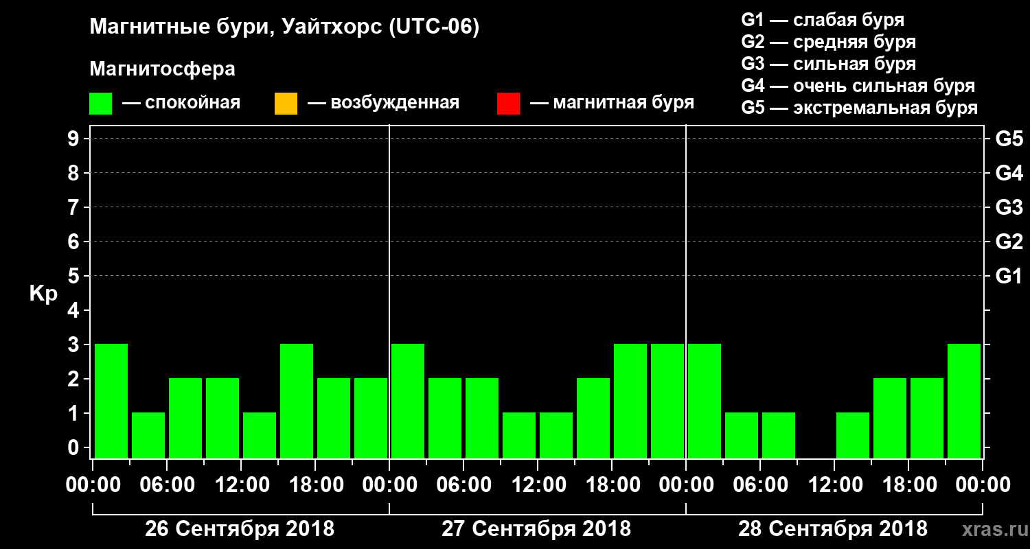 Магнитные бури в Уайтхорсе 28 сентября 2018 года