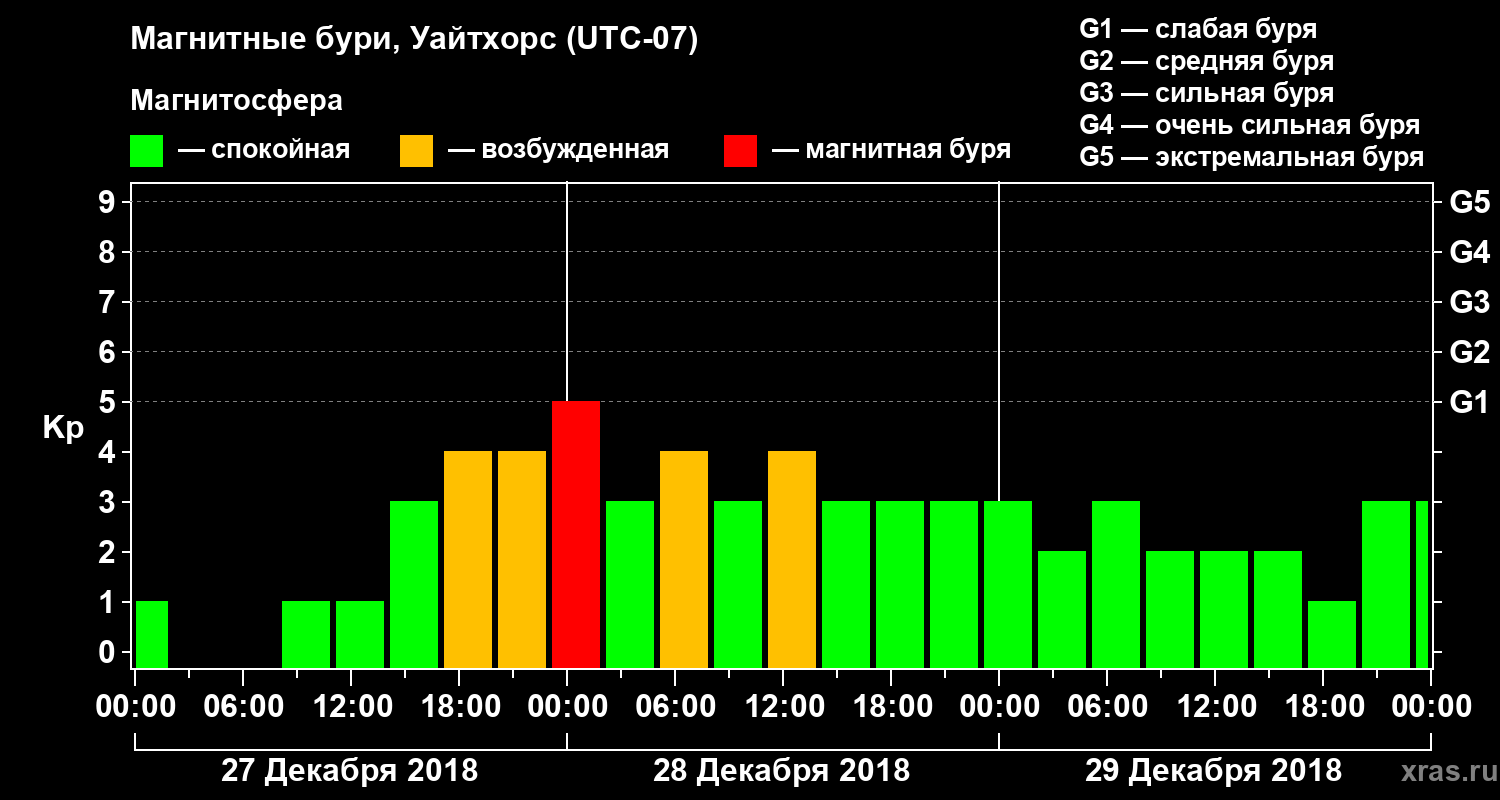 Магнитные бури в Уайтхорсе 29 декабря 2018 года