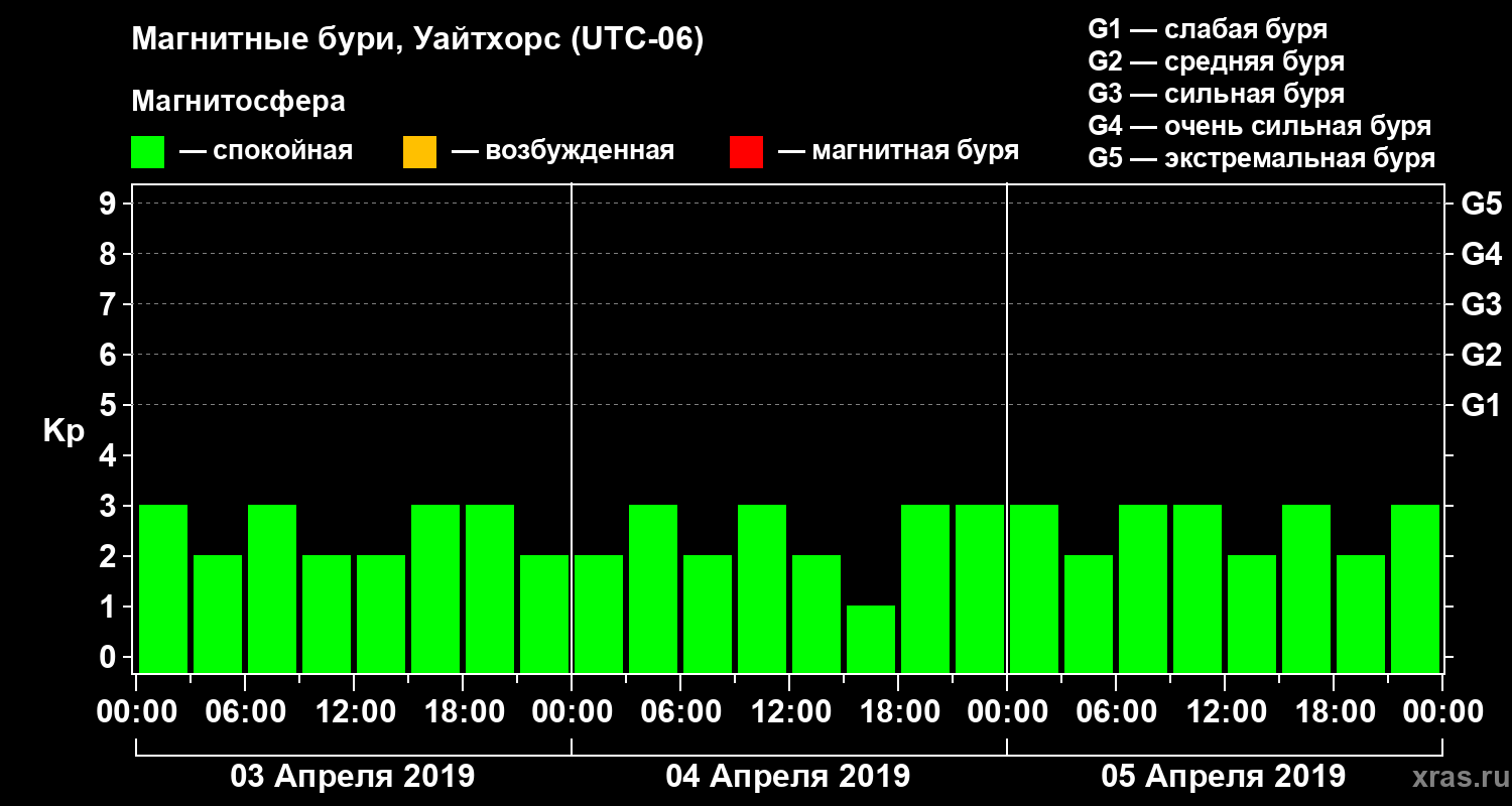 Магнитные бури в Уайтхорсе 5 апреля 2019 года