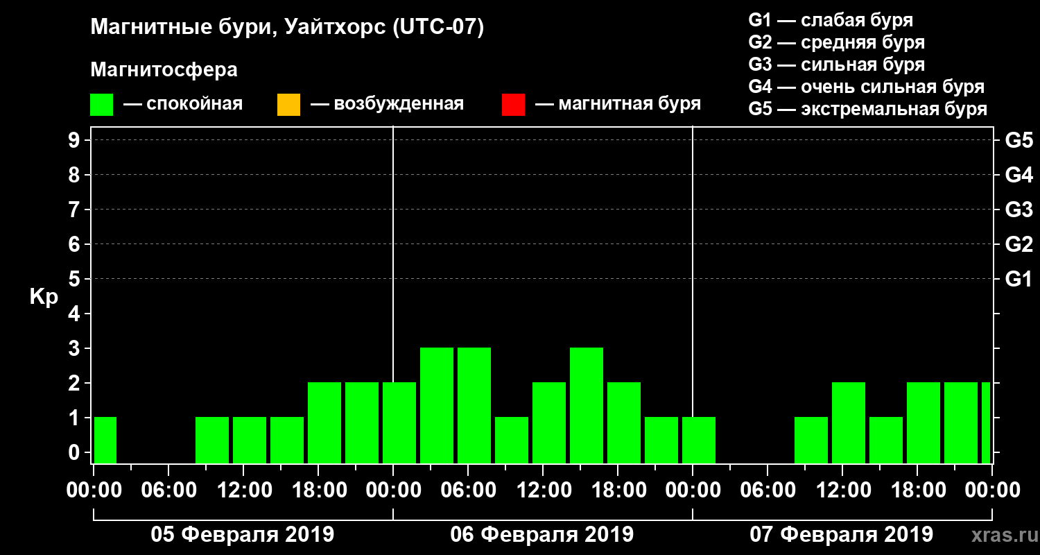 Магнитные бури в Уайтхорсе 7 февраля 2019 года