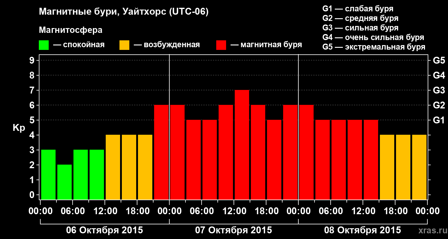 Магнитные бури в Уайтхорсе 8 октября 2015 года