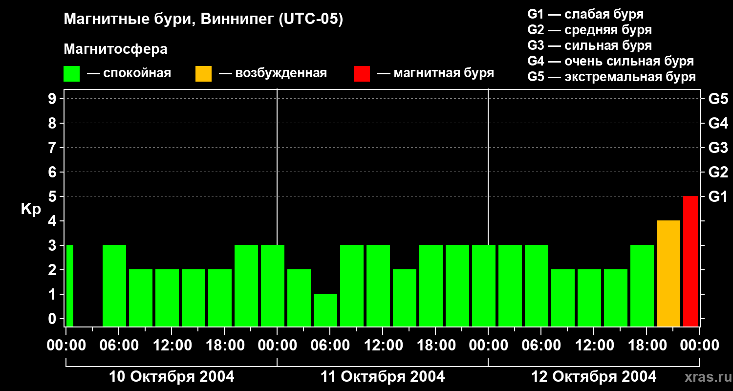 Магнитные бури в Виннипеге — 12 октября 2004 года
