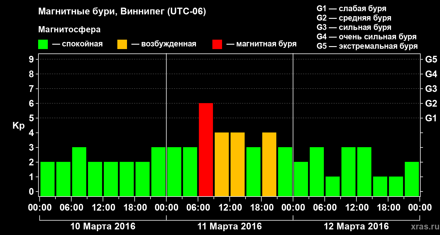 Магнитные бури в Виннипеге — 12 марта 2016 года