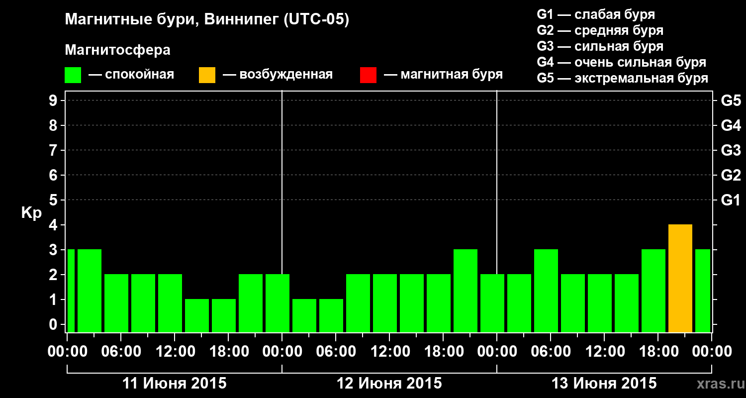 Магнитные бури в Виннипеге — 13 июня 2015 года