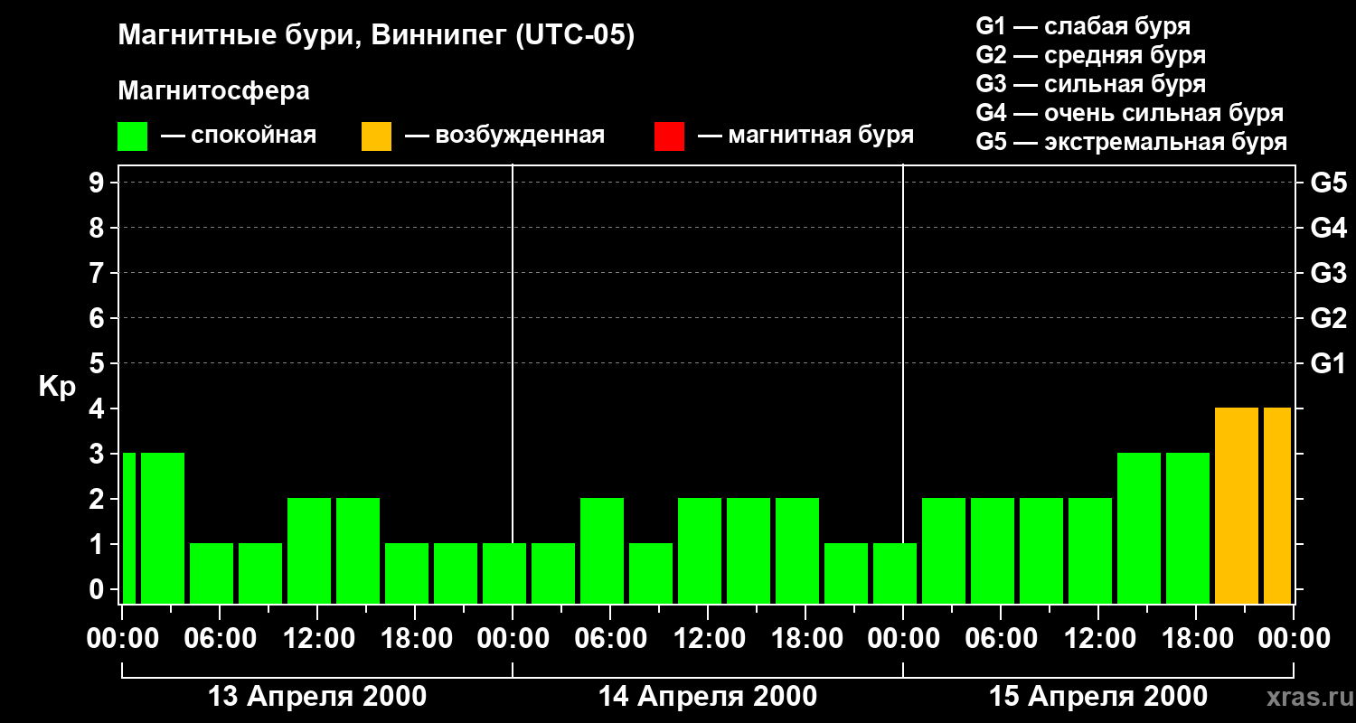 Магнитные бури в Виннипеге — 15 апреля 2000 года