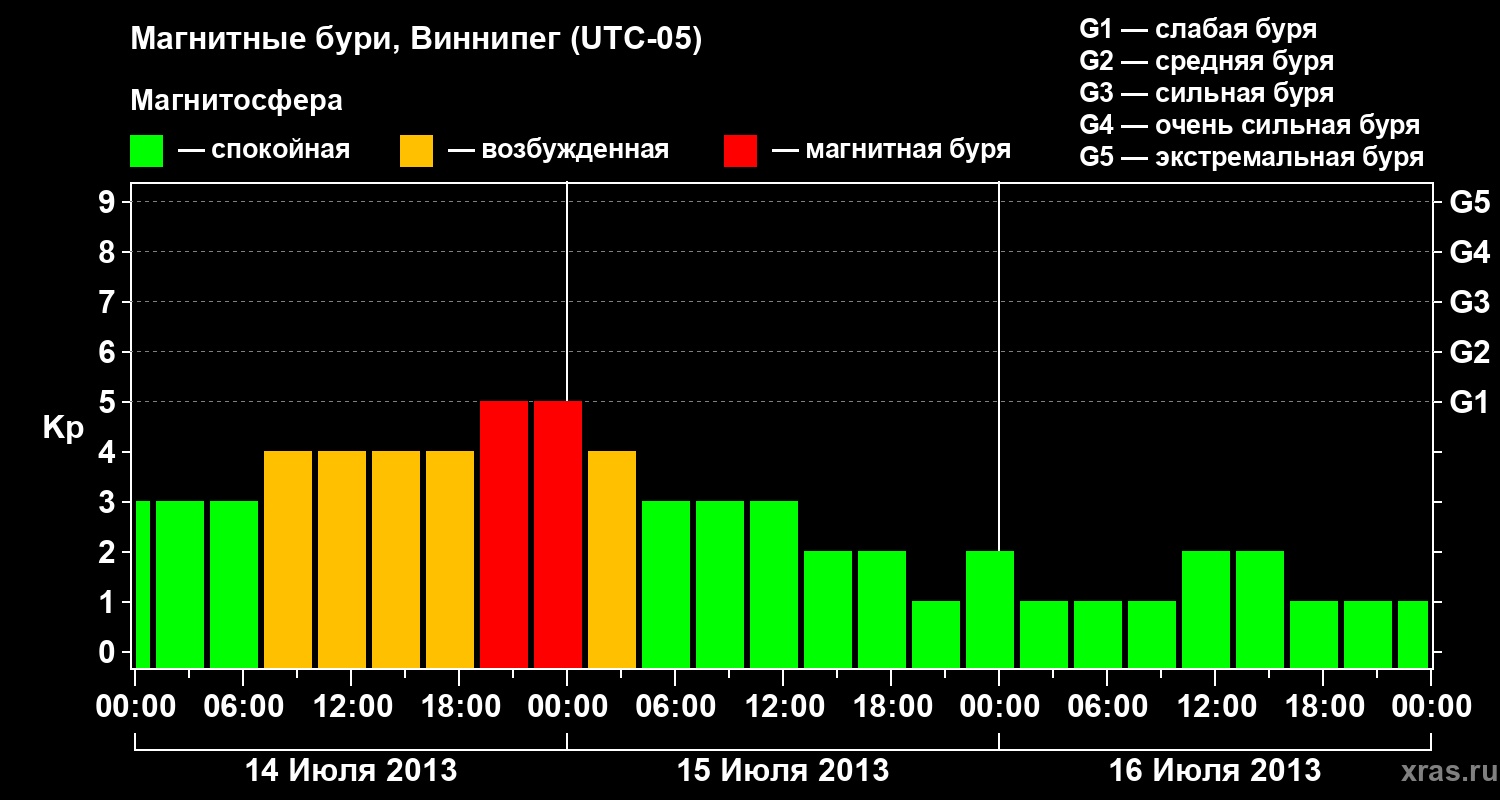 Магнитные бури в Виннипеге — 16 июля 2013 года