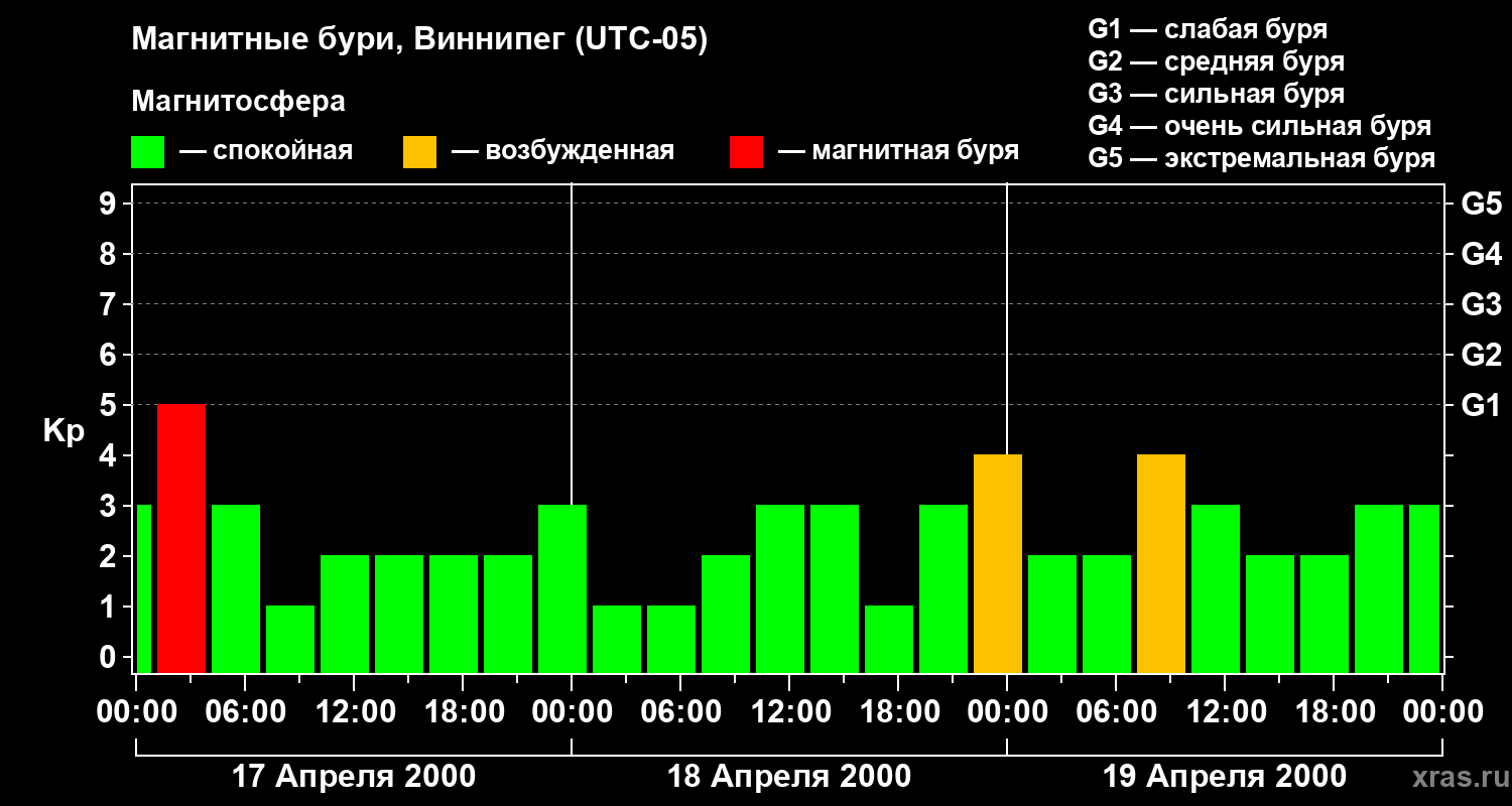Магнитные бури в Виннипеге — 19 апреля 2000 года