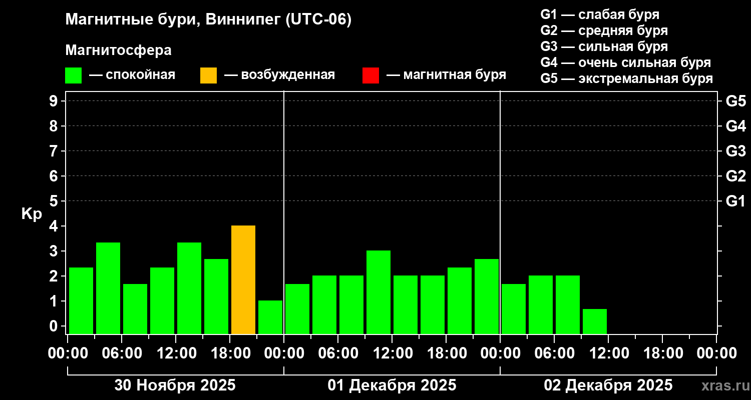 Магнитные бури в Виннипеге 2 декабря 2025 года