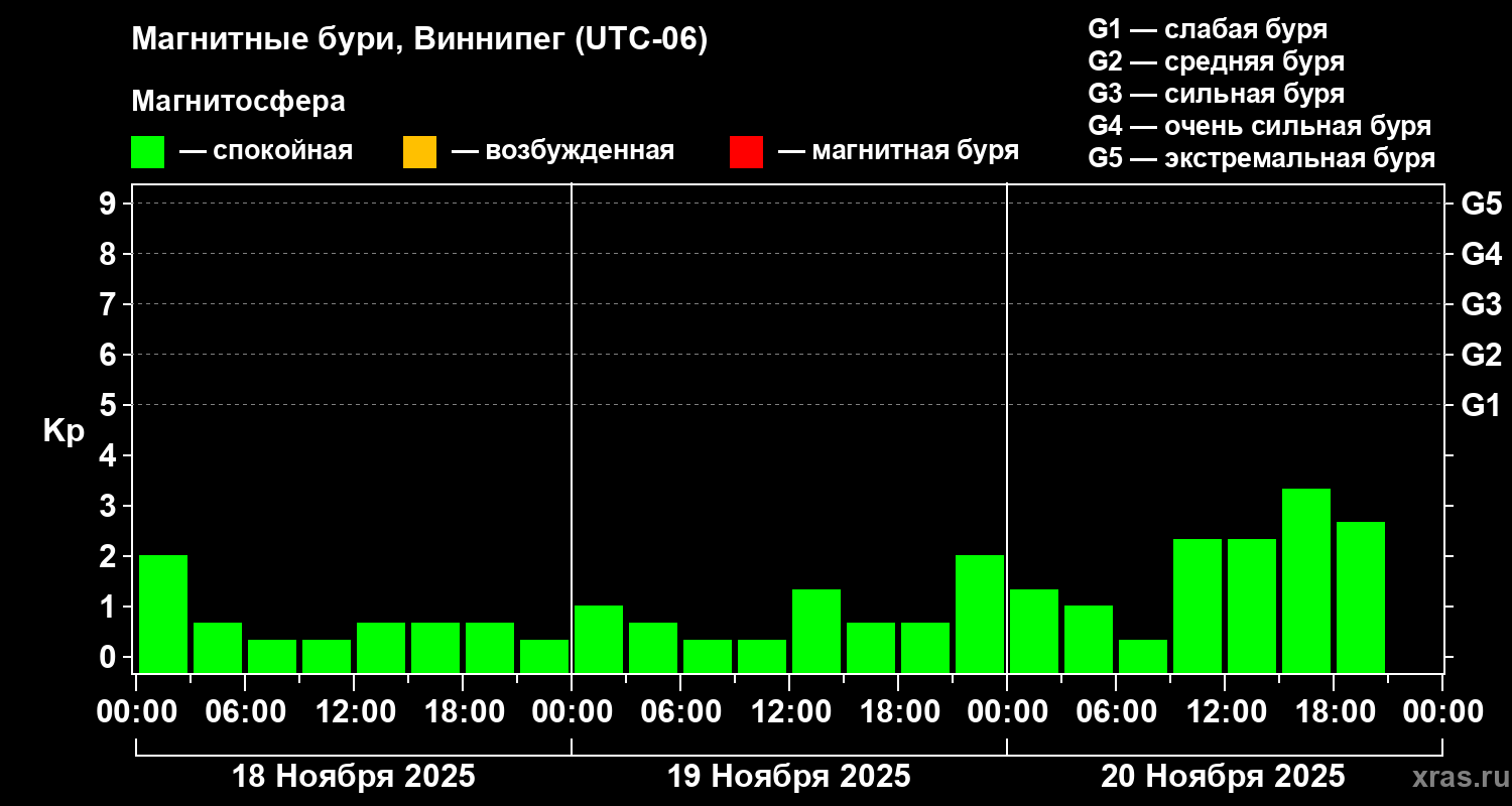 Магнитные бури в Виннипеге — 20 ноября 2025 года