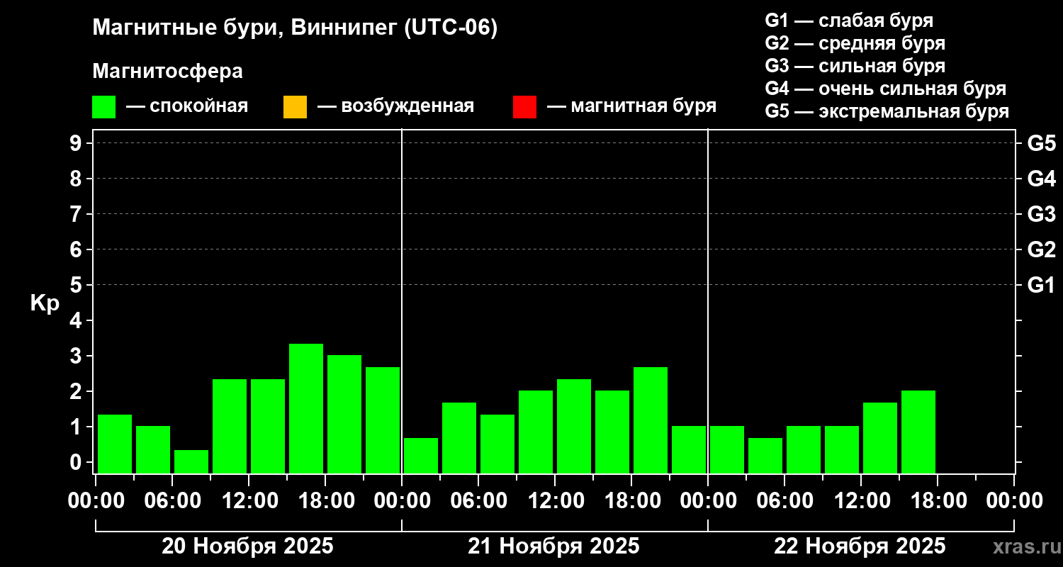Магнитные бури в Виннипеге 22 ноября 2025 года